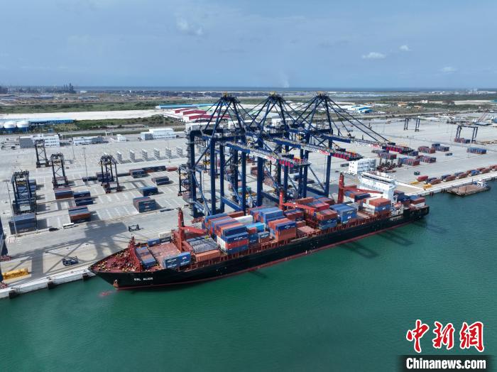 今年1月,中交集團(tuán)中國(guó)港灣投資建設(shè)運(yùn)營(yíng)的尼日利亞萊基深水港開(kāi)港運(yùn)營(yíng),圖為“愛(ài)麗絲”號(hào)貨船靠港。(中國(guó)港灣供圖)