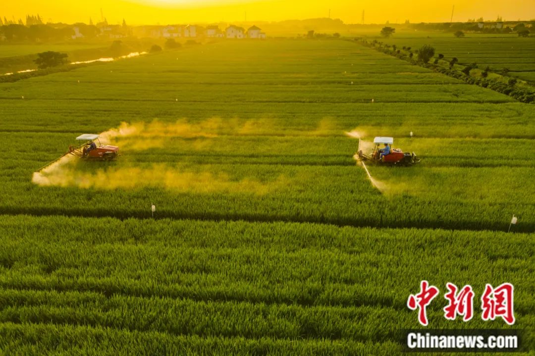江蘇省昆山市三聯(lián)村雙婁里稻田,農民駕駛植保機為水稻噴農藥。袁新宇 攝