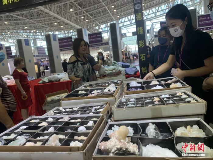 觀眾在中國(guó)(湖南)國(guó)際礦物寶石博覽會(huì)上“淘寶”。魯毅 攝
