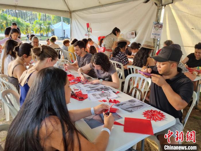 當(dāng)?shù)貢r間9月16日,坎皮納斯市民在當(dāng)?shù)仄咸蜒拦珗@體驗中國剪紙、書法、制作燈籠等文化活動。坎皮納斯大學(xué)孔院供圖