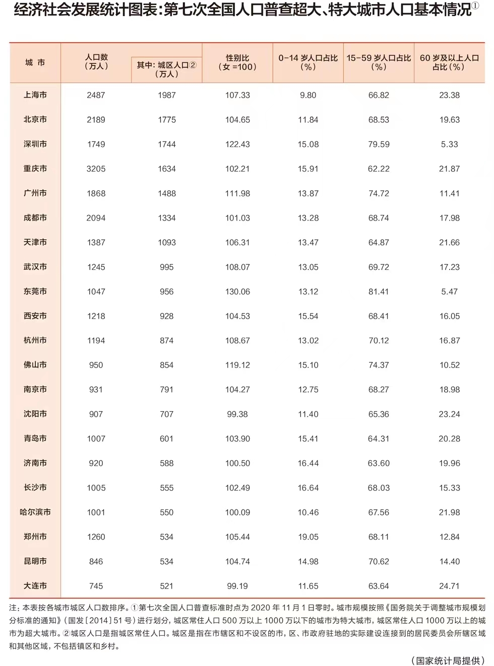 2021年9月,國家統(tǒng)計局根據(jù)2020年全國人口普查數(shù)據(jù),通過《求是》雜志發(fā)布了全國超大和特大城市名單。