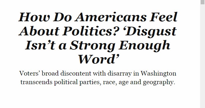 皮尤研究中心在七月份進行的一項調(diào)查發(fā)現(xiàn),美國人對政治領(lǐng)導(dǎo)人不滿意,這種不滿跨越了種族、年齡和黨派的界限。65%的受訪者表示,他們一想到政治就感到疲倦。