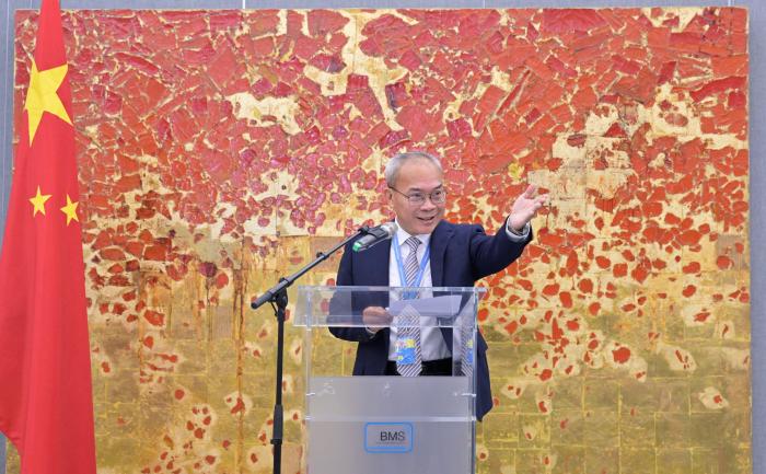 中國常駐維也納聯(lián)合國和其他國際組織代表李松大使在開幕式上致辭。歐洲時報記者周修怡 攝