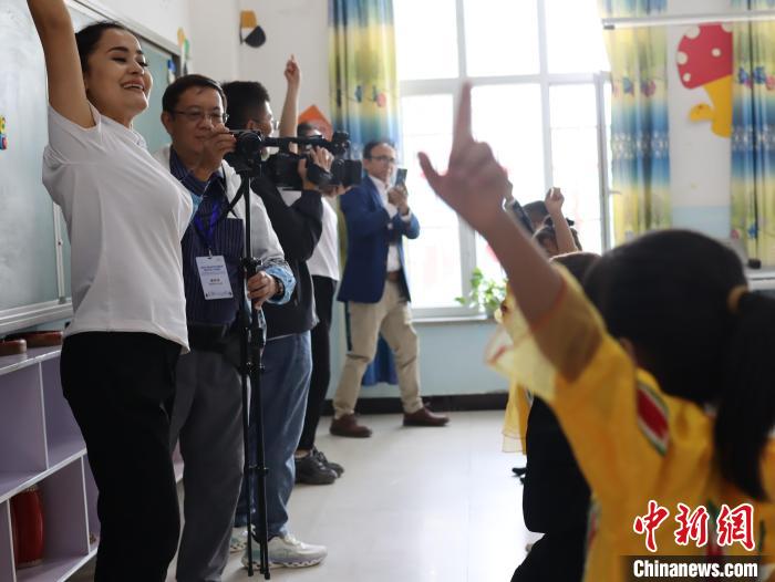 近日,泰國記者協(xié)會主席孟孔(左二)走進喀什地區(qū)疏附縣吾庫薩克鎮(zhèn)七村學校參訪?!≈行律缬浾?薄雯雯 攝