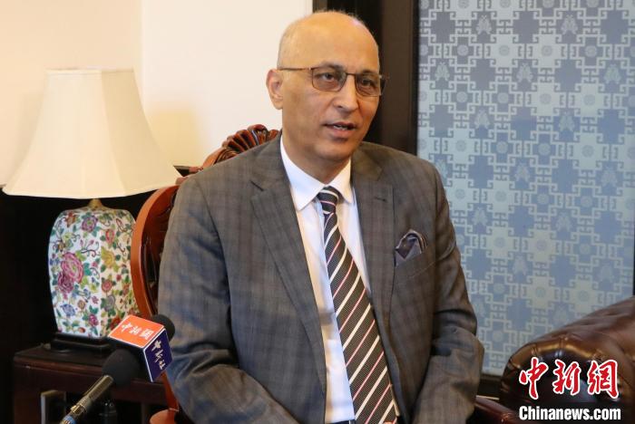 近日,巴基斯坦駐華大使莫因·哈克(Moin Ul Haque)接受中新社專訪?!?巴基斯坦駐華使館供圖)