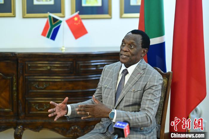 “‘一帶一路’倡議提出10周年,這一重要倡議取得了實實在在的成果。”南非駐華大使謝勝文日前在北京接受中新社記者專訪,介紹南中、非中共建“一帶一路”成果,指出這一倡議在非洲國家受到廣泛歡迎。 中新社記者 田雨昊 攝
