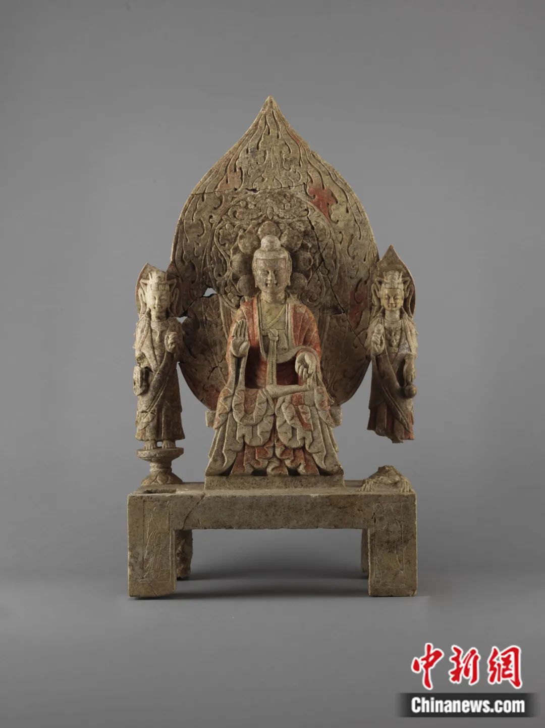 鄴城遺址東郭區(qū)出土的北魏坐佛三尊像。鄴城考古隊供圖