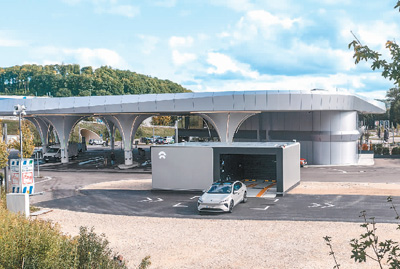 圖為位于德國(guó)柏林的蔚來(lái)?yè)Q電站。