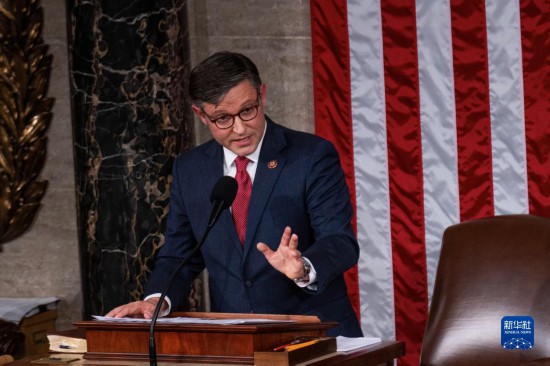 10月25日,在美國(guó)華盛頓國(guó)會(huì),新當(dāng)選的眾議院議長(zhǎng)邁克·約翰遜發(fā)表講話。新華社發(fā)(亞倫攝)