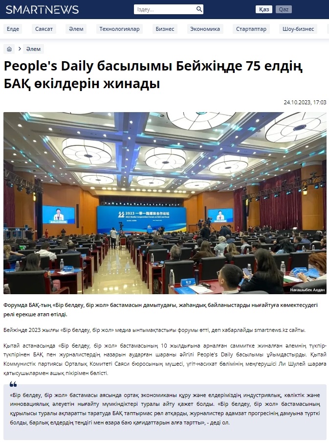哈薩克斯坦Smartnews網(wǎng)站報(bào)道2023“一帶一路”媒體合作論壇