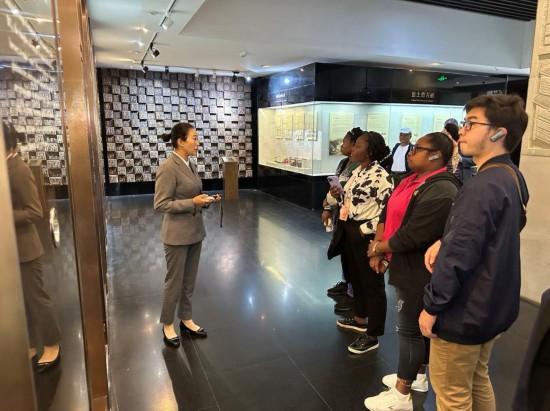 10月23日,在中國酒文化城,2023“一帶一路”媒體合作論壇聯(lián)合采訪團(tuán)團(tuán)員認(rèn)真聆聽講解。本報(bào)記者 劉書文攝