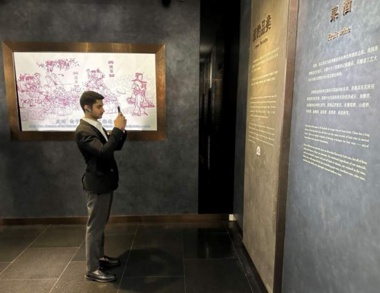 10月23日,2023“一帶一路”媒體合作論壇聯(lián)合采訪團(tuán)團(tuán)員在中國酒文化城認(rèn)真觀看展覽。本報(bào)記者 劉書文攝