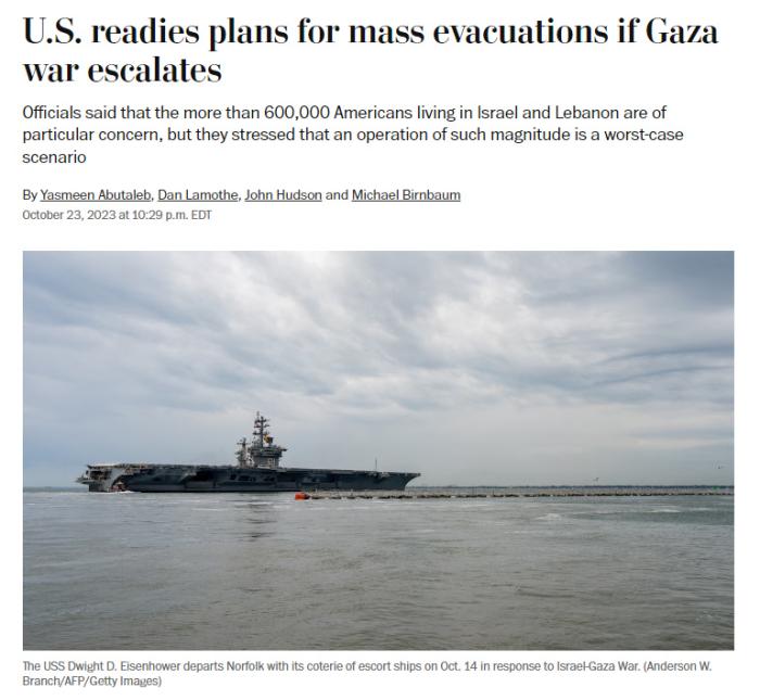 據(jù)報(bào)道,四名熟悉美國(guó)政府應(yīng)急計(jì)劃的官員透露,居住在以色列和鄰國(guó)黎巴嫩的美國(guó)人對(duì)巴以局勢(shì)尤其感到擔(dān)憂,他們還表示,如果發(fā)生如此大規(guī)模的撤離,將被認(rèn)為是“最壞的情況”。