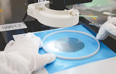 福建省福州高新技術(shù)產(chǎn)業(yè)開發(fā)區(qū)一芯片生產(chǎn)車間,工作人員在檢測芯片產(chǎn)品。