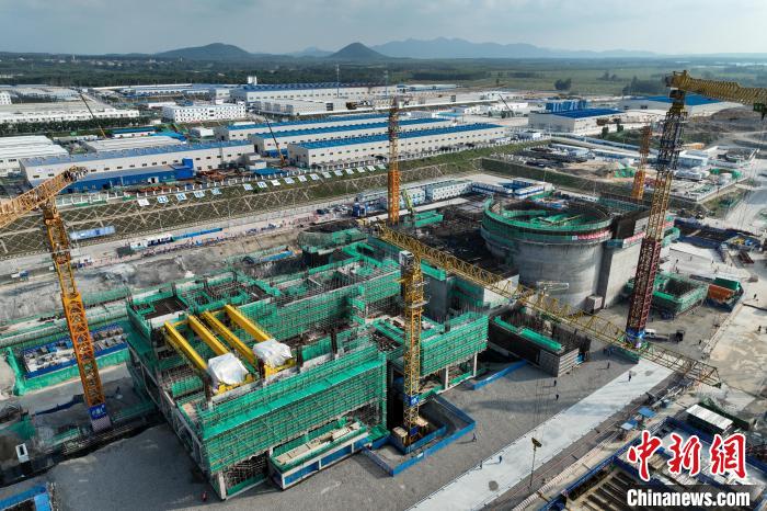 圖為航拍全球首個(gè)開工建設(shè)的陸上商用模塊化小型反應(yīng)堆“玲龍一號(hào)”。海南核電有限公司供圖