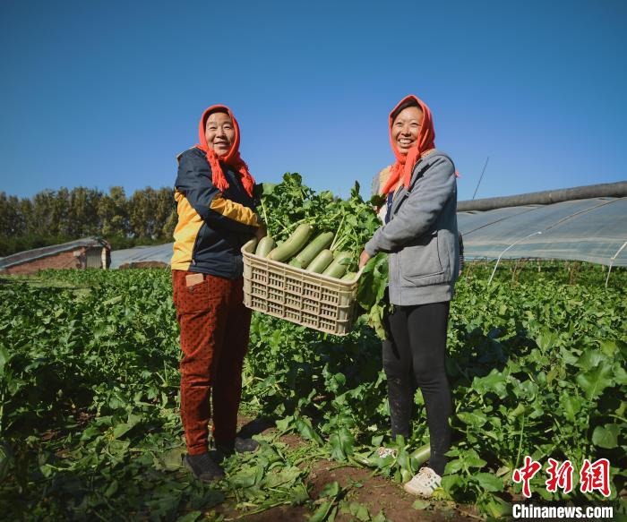 11月11日,天津西青區(qū)辛口鎮(zhèn)小沙窩村,村民在大棚中將采收后的蘿卜裝入筐中。天津市西青區(qū)辛口鎮(zhèn)古時歷經(jīng)多次河水泛濫,大量泥沙及有機(jī)物逐步沉積,形成特有的“上沙下粘”土壤條件,造就了沙窩蘿卜脆嫩多汁,口感清爽,味道甘甜。 中新社記者 佟郁 攝
