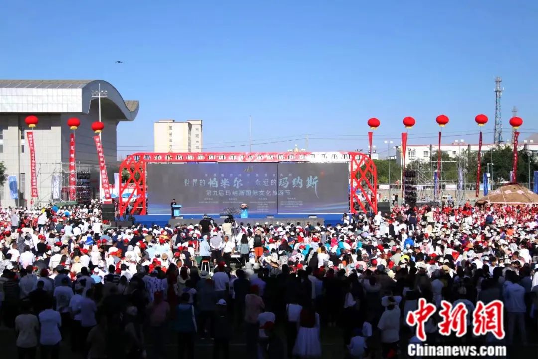 2023年7月中旬,第九屆瑪納斯國際文化旅游節(jié)在新疆克孜勒蘇柯爾克孜自治州烏恰縣開幕。圖為開幕式現(xiàn)場。茍繼鵬 攝
