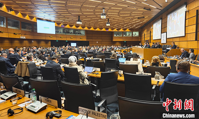 11月22日,中國(guó)常駐國(guó)際原子能機(jī)構(gòu)代表李松率團(tuán)出席在維也納召開(kāi)的國(guó)際原子能機(jī)構(gòu)11月理事會(huì),就巴以沖突和以色列核問(wèn)題發(fā)言。圖為會(huì)議現(xiàn)場(chǎng)。 中新社發(fā) 中國(guó)常駐維也納代表團(tuán)供圖