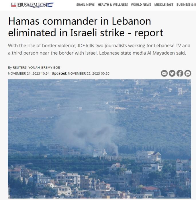 報道還稱,當(dāng)天早些時候,以軍對黎巴嫩的攻擊還導(dǎo)致兩名為黎巴嫩電視臺工作的記者以及在黎以邊境的一名工作人員身亡。