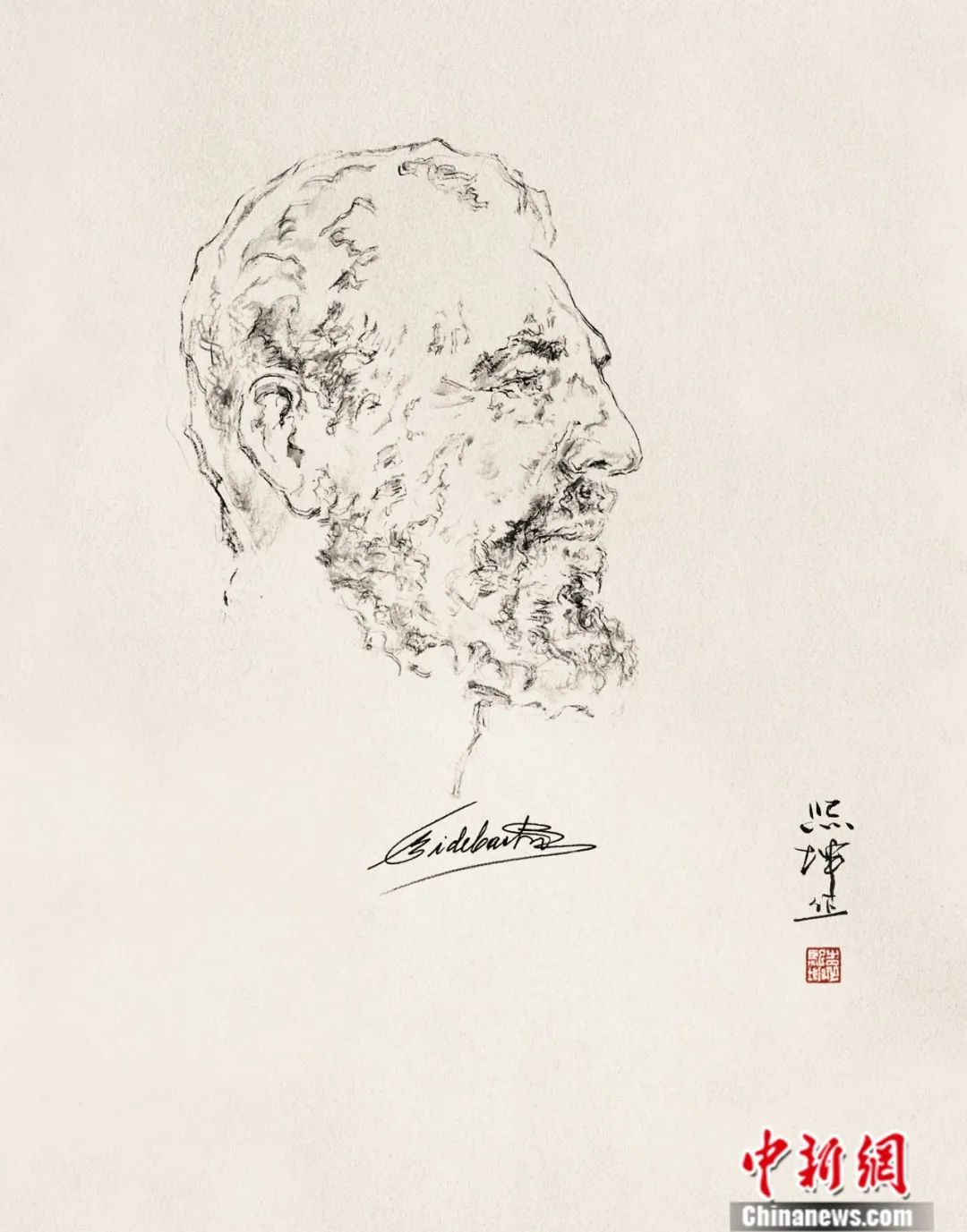 袁熙坤為古巴革命領(lǐng)袖菲德?tīng)?卡斯特羅所作速寫(xiě)。受訪者 供圖