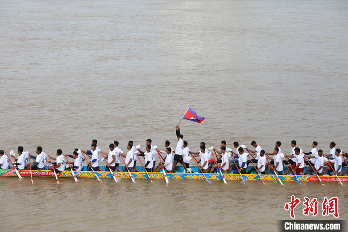 圖為送水節(jié)首日金邊市大型龍舟比賽。 中新社發(fā) 黎海月 攝