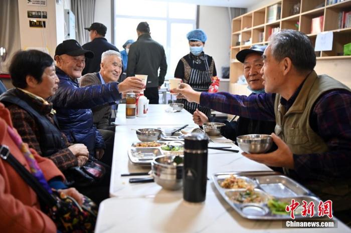 圖為11月27日,甘肅省蘭州市建蘭路街道吳家園社區(qū)養(yǎng)老服務(wù)中心內(nèi),“老中青”組成“飯搭子”在社區(qū)食堂就餐。 中新社記者 九美旦增 攝