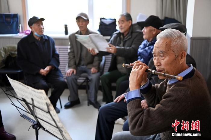 圖為11月27日,甘肅省蘭州市七里河區(qū)建蘭路街道吳家園社區(qū)養(yǎng)老服務(wù)中心內(nèi),老人們在社區(qū)食堂就餐后進行合唱練習(xí)。 中新社記者 九美旦增 攝