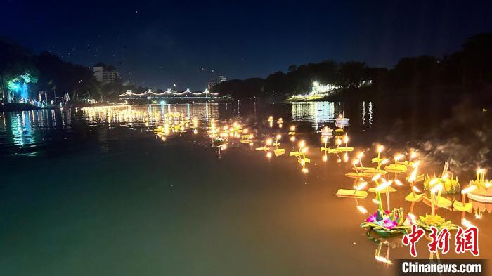 中新網曼谷11月28日電(李映民 趙婧楠)“月圓之夜,河水上漲,青年男女載歌載舞漂水燈,漂水燈,幸福將陪伴你我……”伴隨著悠揚的古典樂曲,泰國古城清邁的濱河邊,民眾穿著傳統(tǒng)服裝,手里捧著精心制作的水燈,放到河面上,隨著水流緩緩漂去……