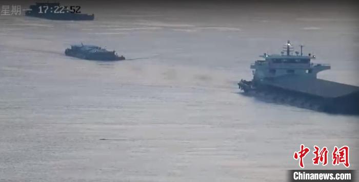 這頭野豬泳姿非常靈活,還主動避讓了長江中行駛中的各類船舶。江蘇海事局 供圖