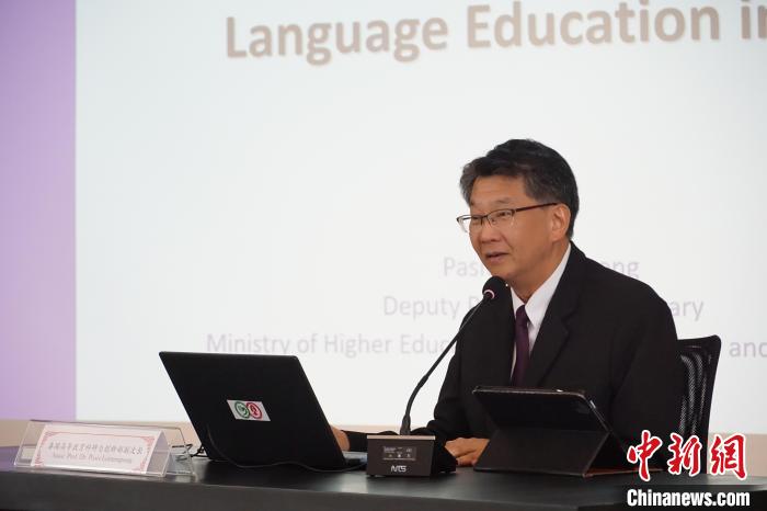 泰國高等教育和科研與創(chuàng)新部常務(wù)副次長帕斯·洛提拉蓬作主旨報(bào)告。學(xué)校供圖