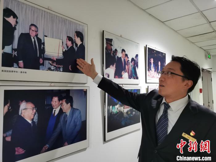 12月1日,南園賓館副總經(jīng)理羅浩介紹1994年基辛格訪(fǎng)問(wèn)蘇州時(shí)在南園賓館的故事。 中新社記者 鐘升 攝