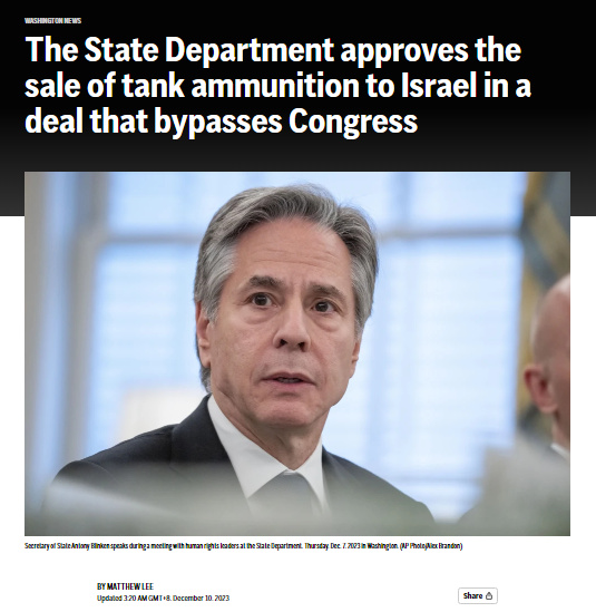 報(bào)道稱,美國國務(wù)院表示,美國務(wù)卿布林肯確定出于維護(hù)美國國家安全利益的考慮,“存在緊急情況,需要立即出售這批彈藥”。美國務(wù)院隨后于8日晚間向國會通報(bào)了此次緊急出售事宜。