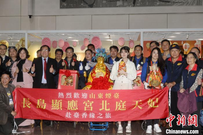 中新社臺北12月12日電 (記者 陳小愿)山東煙臺長島顯應(yīng)宮宋代銅身媽祖“北庭天妃”12日抵達(dá)臺灣桃園機(jī)場,將前往新北、臺北等多個(gè)縣市的16個(gè)宮廟巡安、探親。