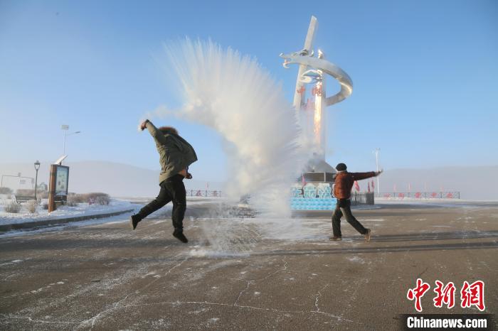 12月13日,“中國(guó)最冷小鎮(zhèn)”最低氣溫降至-45.1℃,游客在體驗(yàn)“潑水成冰”。馮宏偉 攝