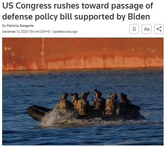 與此同時(shí),美國(guó)總統(tǒng)拜登12日表示,強(qiáng)烈支持國(guó)會(huì)參眾兩院迅速在年底前通過這份2024財(cái)年《國(guó)防授權(quán)法案》。