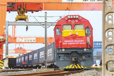 “開行量持續(xù)增加、運(yùn)輸產(chǎn)品更加多元、線路不斷豐富優(yōu)化……從中歐班列開行的變化中,可以明顯看出共建‘一帶一路’倡議提出十年來的蓬勃發(fā)展?!背啥紘?guó)際鐵路港經(jīng)開區(qū)管委會(huì)主任雷庭介紹。