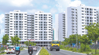 駕車從首都馬累出發(fā),駛過馬爾代夫首座跨海大橋中馬友誼大橋,不久便到了當?shù)氐诙髰u胡魯馬累。沿著寬闊的大街前行,一排排色彩明亮的樓房赫然映入眼簾。登高遠眺,十幾幢白墻藍頂?shù)臉欠浚c遠處蔚藍的大海相互映襯,格外醒目;另一個粉墻紅頂?shù)臉侨号c其相鄰,兩個樓群以林木蔥郁的街心花園相隔。