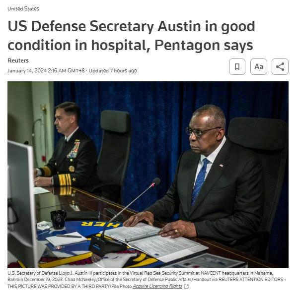 據(jù)報道,五角大樓新聞秘書在一份聲明中表示,奧斯汀正在與其高級幕僚保持聯(lián)系,能夠完全訪問加密通信設備,并繼續(xù)監(jiān)控著美國防部在全球的日常運作。