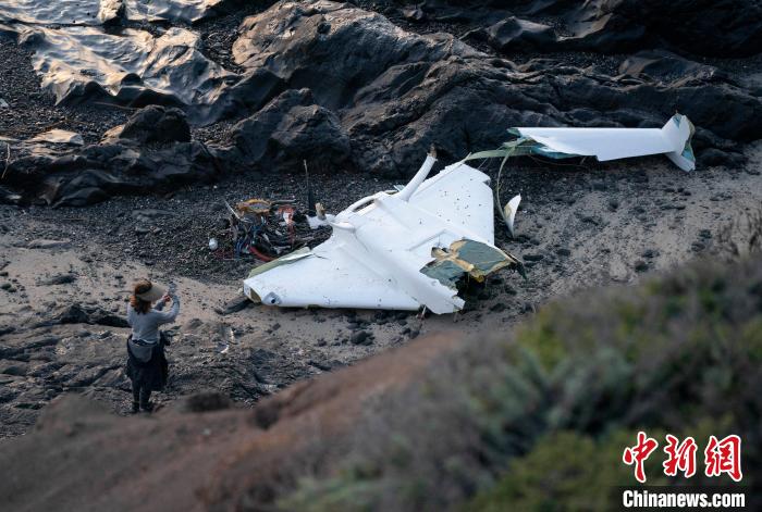 當(dāng)?shù)貢r(shí)間1月15日,一架小型飛機(jī)的殘骸出現(xiàn)在美國(guó)北加州圣馬特奧縣海岸。 中新社記者 劉關(guān)關(guān) 攝