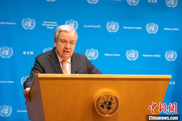 當(dāng)?shù)貢r(shí)間1月15日,聯(lián)合國(guó)秘書(shū)長(zhǎng)古特雷斯在紐約聯(lián)合國(guó)總部向媒體發(fā)表講話,再次呼吁立即在加沙地帶實(shí)現(xiàn)人道主義?;?。 中新社記者 王帆 攝