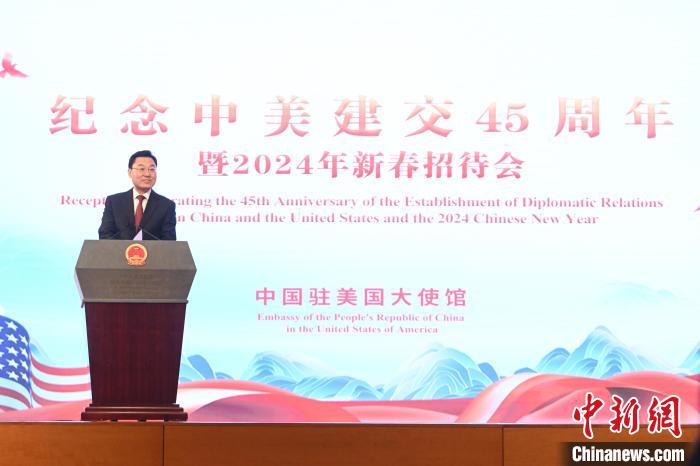 當?shù)貢r間1月16日,中國駐美國使館舉辦紀念中美建交45周年暨新春招待會。圖為中國駐美大使謝鋒致辭。中新社記者 陳孟統(tǒng) 攝