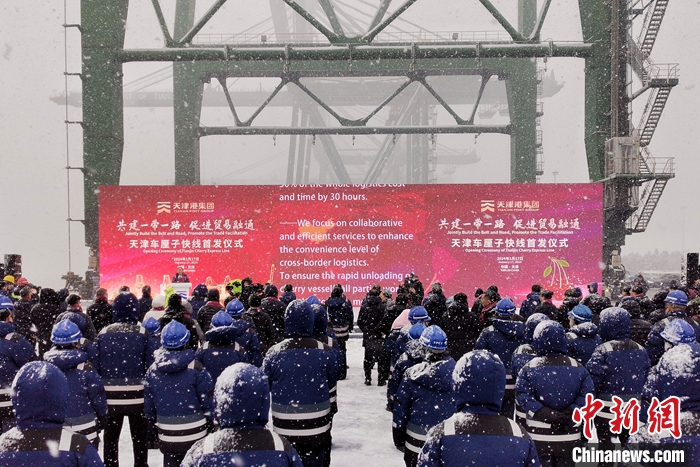 1月17日,天津車厘子快線首發(fā)儀式在天津港太平洋國際集裝箱碼頭舉行。“車厘子快線”始發(fā)于智利圣安東尼奧港,直抵天津港。未來一周,還將有2艘次智利車厘子貨船抵達天津港,累計8300噸車厘子及其他南美洲產(chǎn)品從天津港上岸。 中新社記者 佟郁 攝