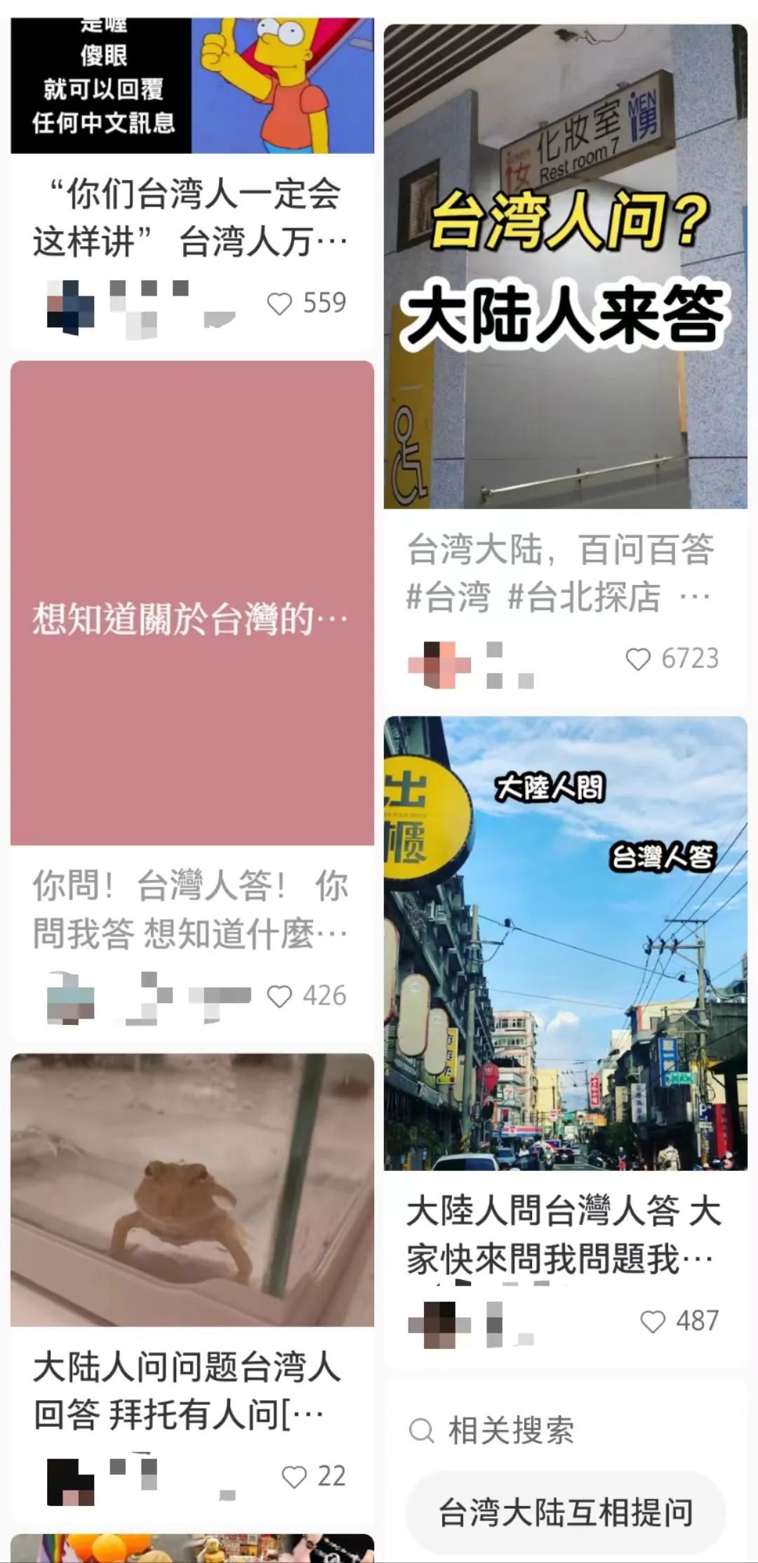“大陸哪個(gè)城市的美食多?”“用現(xiàn)金支付可以嗎?”“畢業(yè)后想去大陸工作,可以分享一下經(jīng)驗(yàn)嗎?”……小紅書上有不少“臺(tái)灣人問,大陸人答”的帖子,兩岸年輕人就生活、文化、飲食等話題,在評(píng)論區(qū)留言、互動(dòng)。當(dāng)然,也有臺(tái)灣年輕人現(xiàn)身回答島內(nèi)情況,同樣熱評(píng)紛紛。