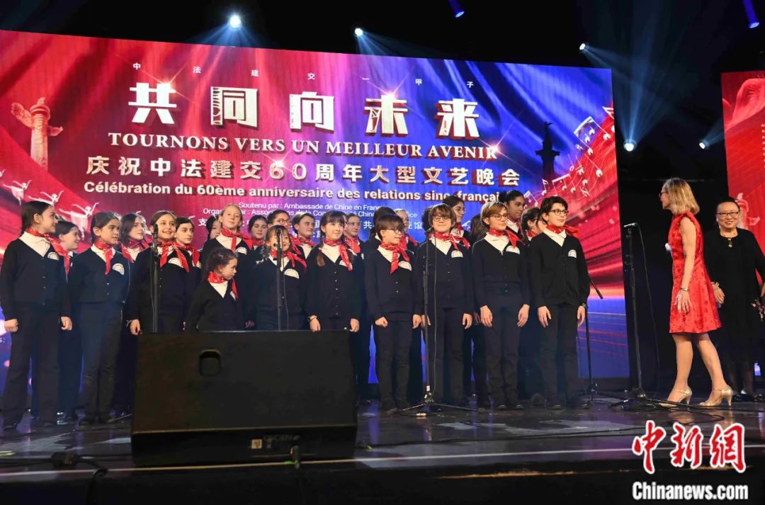 當?shù)貢r間2024年1月16日晚,以“共同向未來”為題的慶祝中法建交60周年大型文藝晚會在巴黎舉辦。圖為法國寶利聲童聲合唱團演唱歌曲。李洋 攝