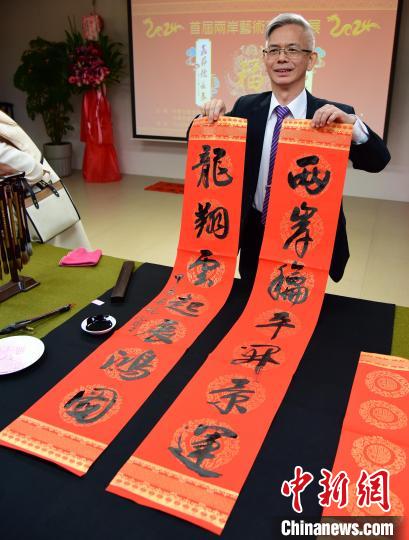 中新網(wǎng)臺(tái)北1月28日電 (記者 路梅)兩岸藝術(shù)家春聯(lián)展28日在臺(tái)北江山如此多嬌藝術(shù)館舉行,32位臺(tái)灣藝術(shù)家、13位大陸藝術(shù)家的90多幅作品參展。