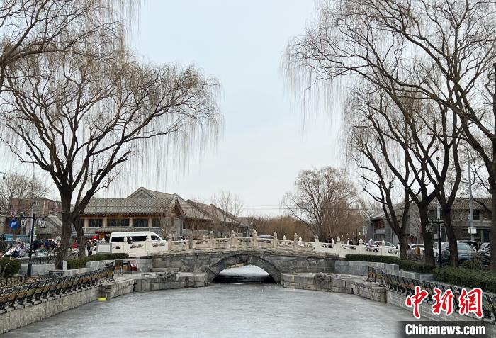 2023年2月22日,眺望位于北京市西城區(qū)的“北京中軸線第一橋”——萬寧橋。萬寧橋始建于元代,為單孔石拱橋,橫跨在什剎海前海東岸的玉河上,西鄰什剎海前海,是《北京中軸線保護管理規(guī)劃(2022年—2035年)》確定的遺產(chǎn)區(qū)要素之一。中新社記者侯宇攝