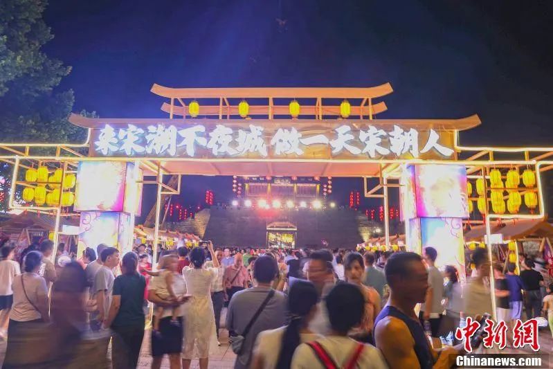 圖為夜幕降臨時,民眾們在江南宋城歷史文化街區(qū)中游玩。劉力鑫 攝