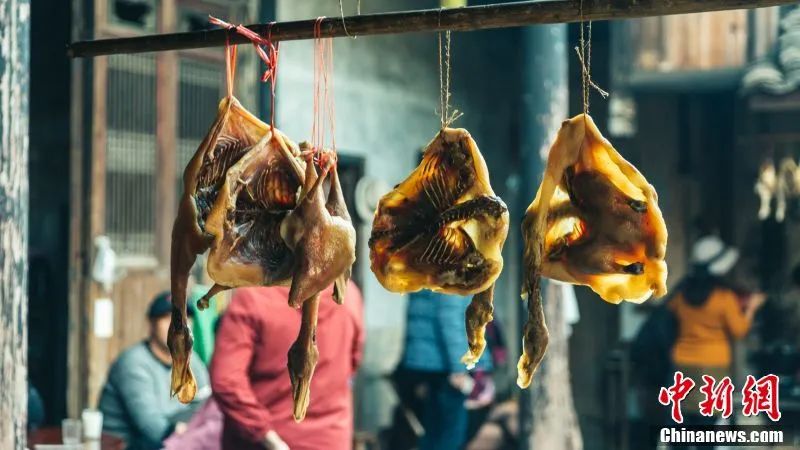 圖為客家居民正在晾曬臘板鴨。劉力鑫 攝