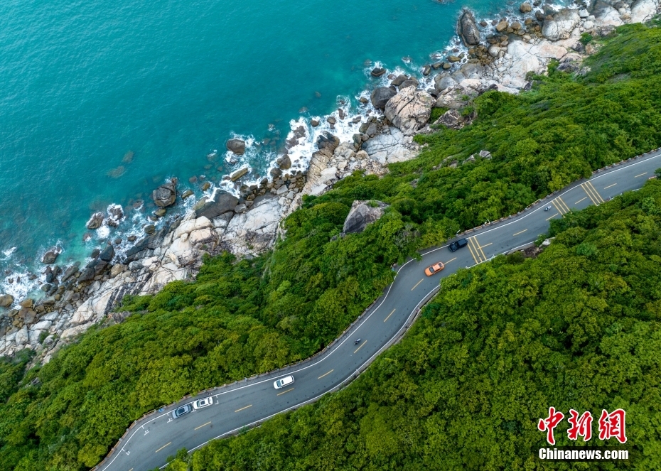 海南環(huán)島旅游公路三亞太陽灣段。(無人機(jī)照片)。中新社記者 駱云飛 攝