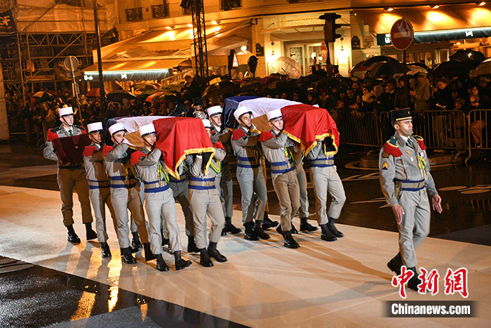 當(dāng)?shù)貢r(shí)間2月21日晚,法國二戰(zhàn)時(shí)期抵抗德國納粹侵略的戰(zhàn)士米薩克·馬努尚與他的夫人梅麗內(nèi)一同入葬先賢祠。馬努尚是首位入葬先賢祠的法共抵抗運(yùn)動(dòng)成員。 中新社記者 李洋 攝